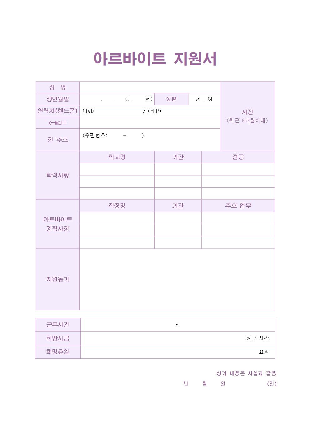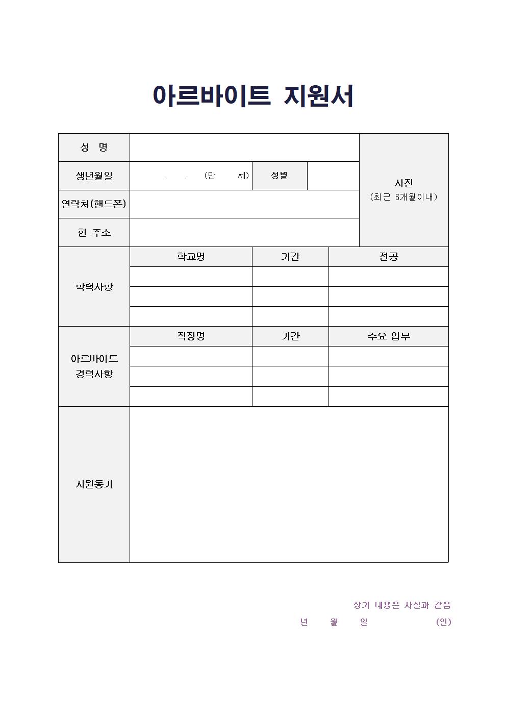 [아르바이트 이력서] 지원서 무료 다운로드